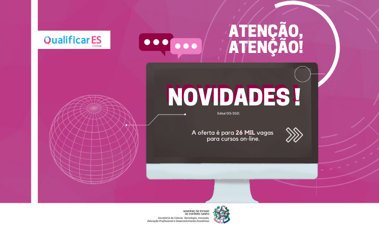A Secretaria de Inovação e Desenvolvimento (Sectides) publicou, nesta segunda-feira (09), uma retificação referente ao Edital Sectides 013/2021, que dispõe sobre a oferta de 26 mil vagas em cursos on-line para o programa Qualificar ES. A partir da retificação, os candidatos poderão optar por até dois cursos oferecidos neste edital. Outra novidade é a prorrogação das inscrições.